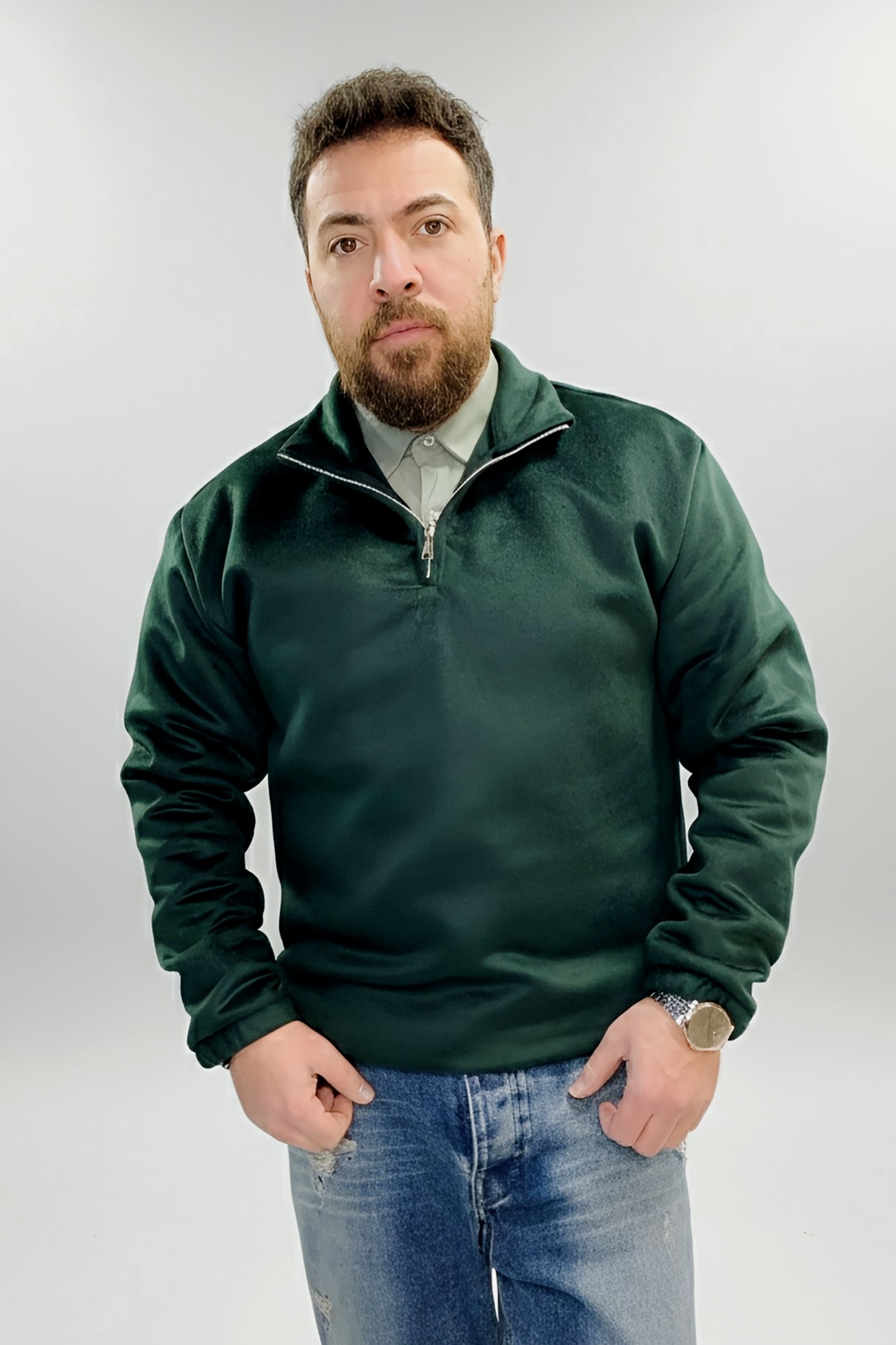 فوتر نیم زیپ سبز یشمی