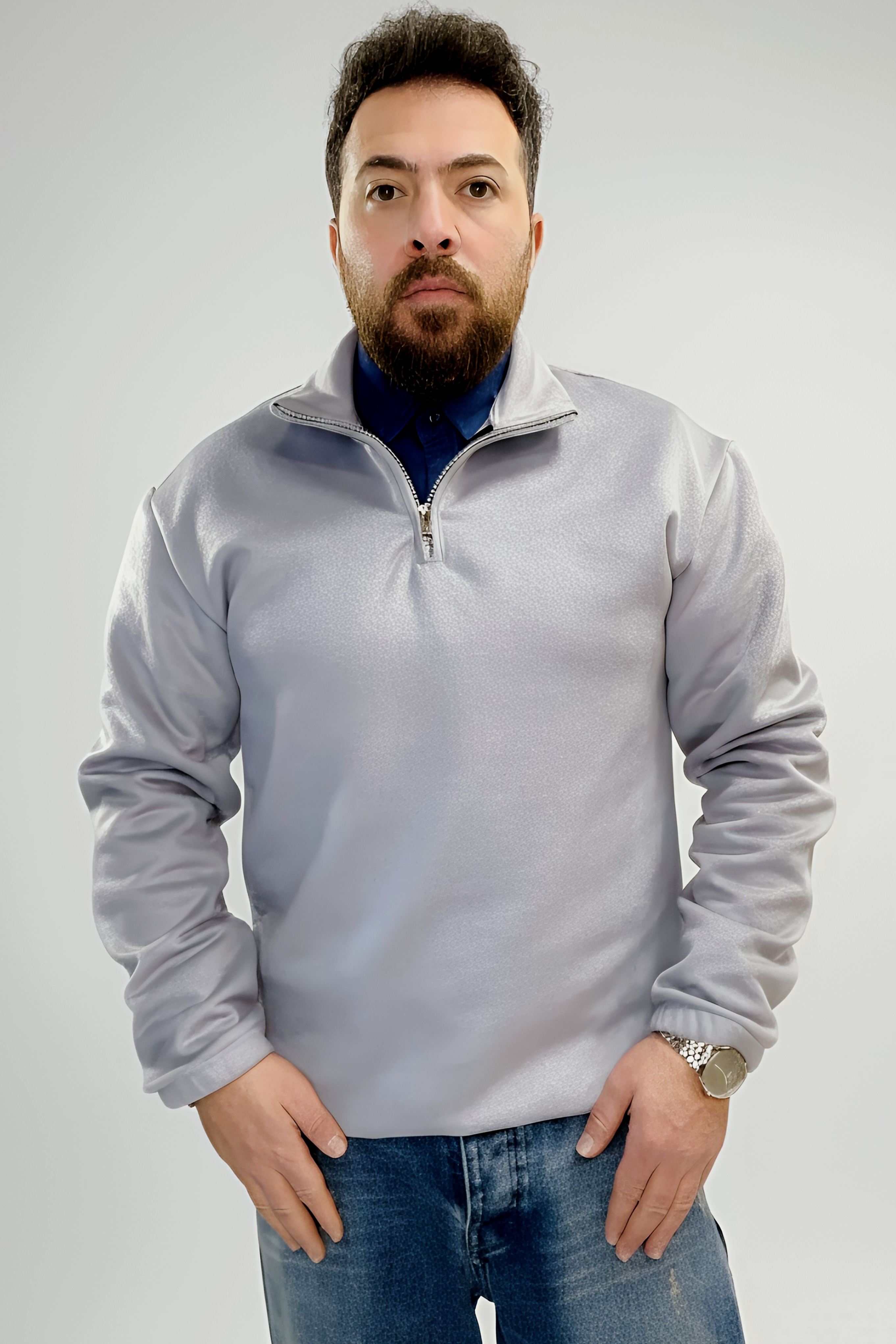 فوتر نیم زیپ طوسی